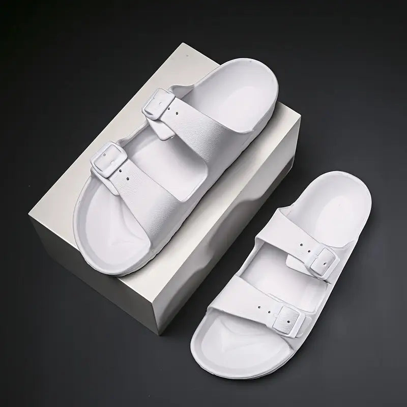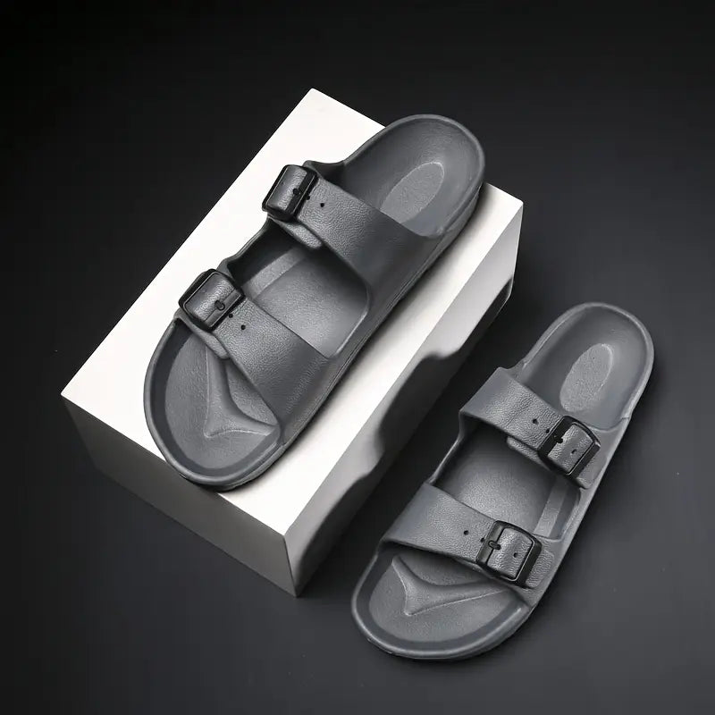 Diese offenen Zehen-Hausschuhe für Herren mit Schnallenriemen bieten die perfekte Kombination aus Komfort, Stil und Bequemlichkeit für den Alltag. Sie sind mit einer schlanken, offenen Zehenpartie gestaltet und bieten ein atmungsaktives und kühles Gefühl für Ihre Füße, was sie ideal zum Entspannen zu Hause oder für lässige Outdoor-Aktivitäten macht. Die verstellbaren Schnallenriemen sorgen für eine sichere und individuelle Passform, während das gepolsterte Fußbett überragenden Komfort bietet und die Fußermüdung im Laufe des Tages reduziert