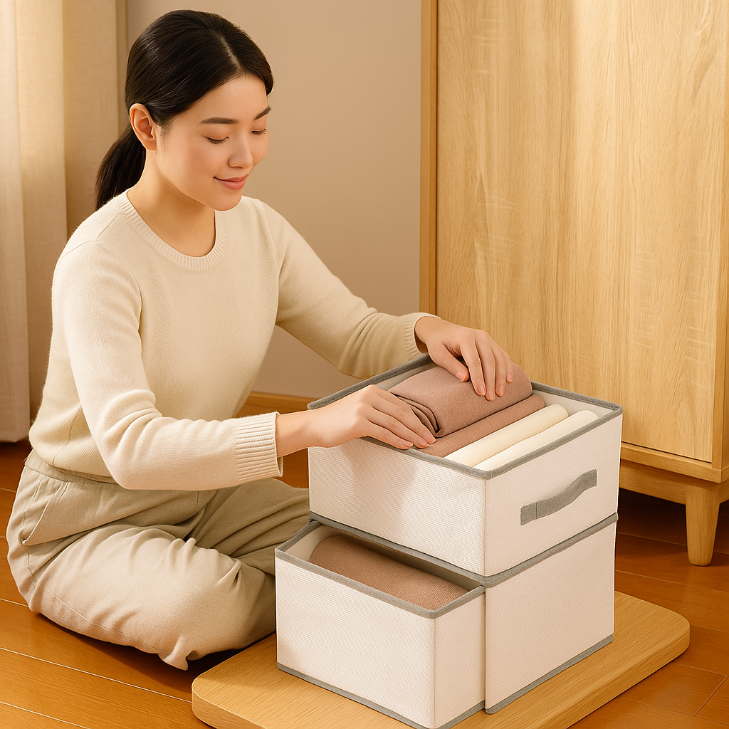 - Modulare Flexibilität: Boxen stapeln oder anordnen, um sich Ihrem Schranklayout anzupassen.