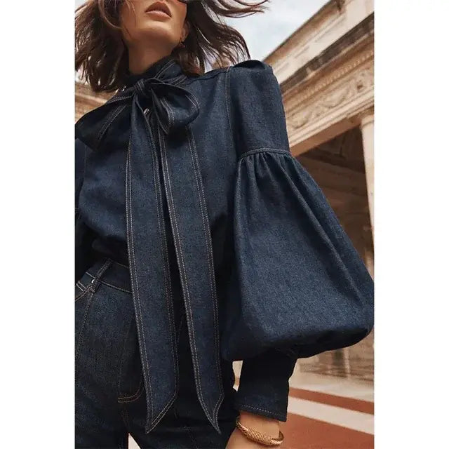 • 1x Camila - Denim-Set aus Bluse und Schlaghose