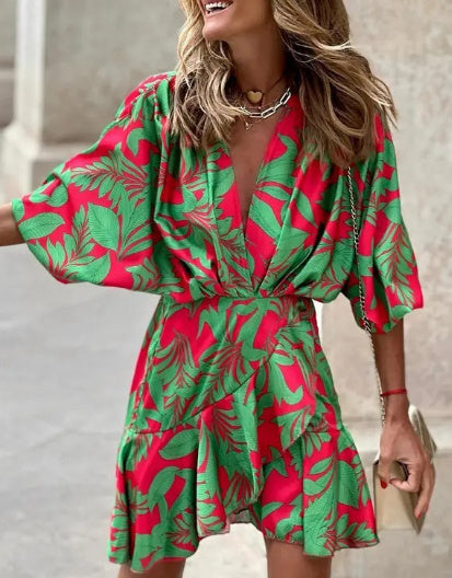 Entdecken Sie das einzigartige Design unseres Kleides mit V-Ausschnitt und unregelmäßigem Saum. Hergestellt aus hochwertigem Polyester, bietet es ein angenehmes Tragegefühl. Der mittellange Schnitt und die Fledermausärmel verleihen diesem Kleid einen stilvollen Look. Perfekt für besondere Anlässe oder den Alltag. Erhältlich in verschiedenen Farben und Mustern. Bitte beachten Sie die Maßtabelle, um die richtige Größe zu wählen.