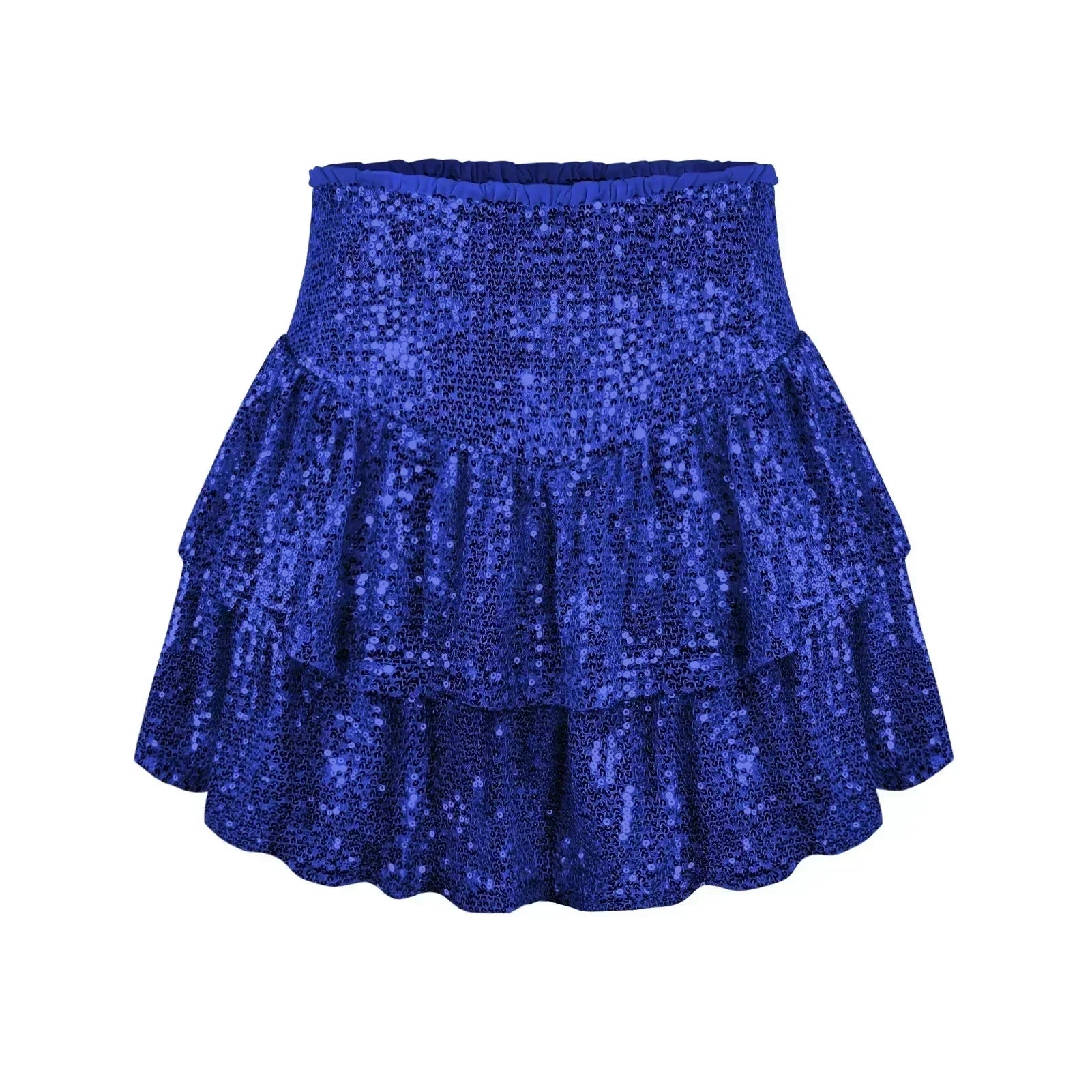 Dieser Damen-Minirock ist für den Sommer konzipiert und endet oberhalb des Knies. Der Rock verfügt über ein Stufendesign mit zwei Lagen Rüschen, die durch sichtbare Stofflagen eine strukturierte Oberfläche erzeugen. Hergestellt aus glänzendem Material, besitzt die Oberfläche ein reflektierendes Finish. Die leichte Verarbeitung eignet sich für das Tragen bei höheren Temperaturen.