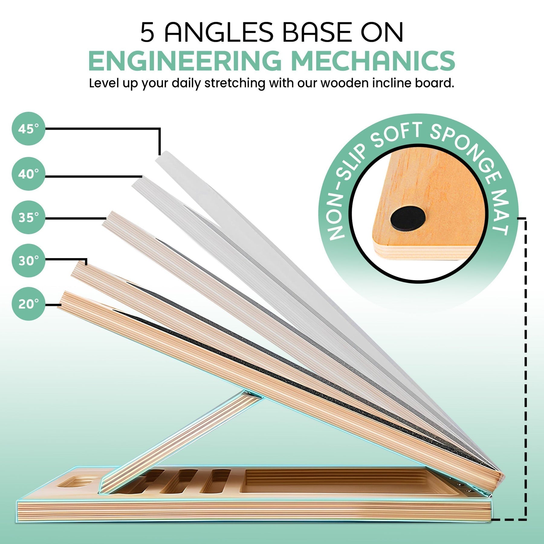 Genießen Sie die Vorteile gesteigerter Flexibilität – ganz ohne Aufwand. Dank der verstellbaren Winkel erhalten Sie jedes Mal die perfekte Dehnung, egal ob zu Hause, bei der Arbeit oder im Fitnessstudio, sodass Sie aktiv und beweglich bleiben.