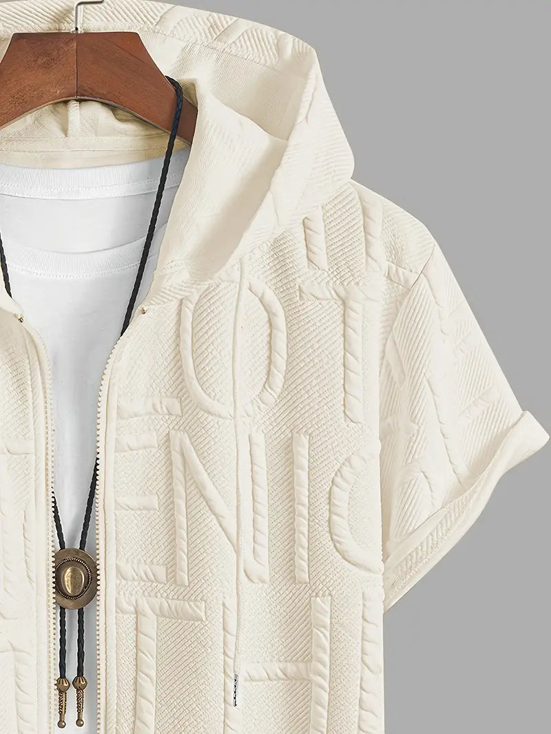 ✅Moderner strukturierter Schau: Die elegante Kurzarm-Kapuzenjacke Henryk verfügt über ein einzigartiges geprägtes Buchstabenmuster, das Ihrem Stil Tiefe und Charakter verleiht. Der Kurzarmschnitt sorgt für einen trendigen Schau und macht sie perfekt für Freizeitaktivitäten. Das Gestaltung verbindet mühelos Mode und Komfort und macht sie zu einer herausragenden Wahl für jede Garderobe.