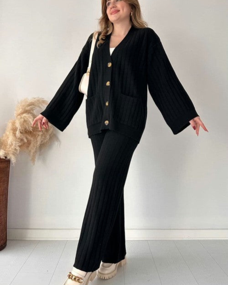 Entdecke das Lariana™ – 2-teiliges Casual Strick-Set, perfekt für diejenigen, die Eleganz und Komfort zu jeder Gelegenheit suchen. Dieses Set wurde entwickelt, um deinen Look zu heben, während es dich überall warm und bequem hält. Hergestellt aus weichem, atmungsaktivem Strick, bietet es eine umhüllende Wärme, ohne dich zu überhitzen, und ist somit ideal für kalte Tage oder entspannte Abende. Mit seinem vielseitigen Design und den neutralen Tönen lässt sich das Lariana™ ganz einfach mit anderen Kleidungsstücken kombinieren und sorgt für einen schicken und abgestimmten Stil zu jeder Gelegenheit.