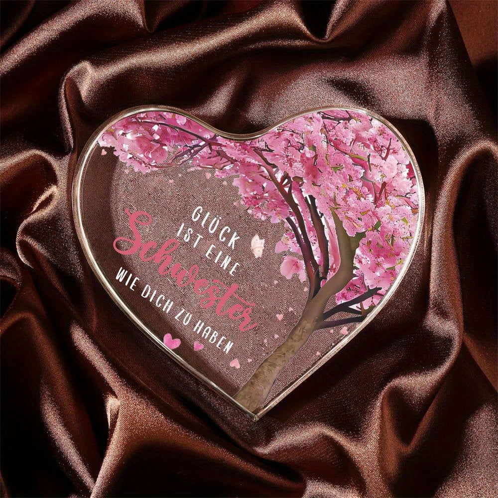 Überraschen Sie Ihre Schwester mit diesem Acrylherz-Andenken, das eine besondere Botschaft der Zuneigung vermittelt. Perfekt als Geschenk zu Geburtstagen, Weihnachten oder einfach, um die tiefe Verbindung zwischen Schwestern zu feiern. Das Herz ist nicht nur eine elegante Dekoration, sondern auch ein praktisches Schreibpapiergewicht für Büro oder Zuhause.