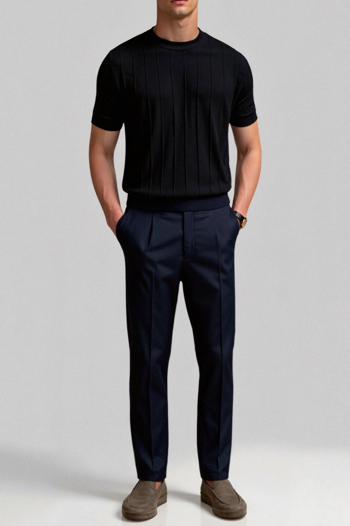 This heavy O-neck T-shirt is perfect for a range of occasions, from relaxed weekends to casual workdays. The classic crew neck and regular fit provide a timeless look, while the medium stretch ensures comfort throughout the day. With its solid color and subtle striped design, this T-shirt effortlessly blends old money elegance with contemporary style.