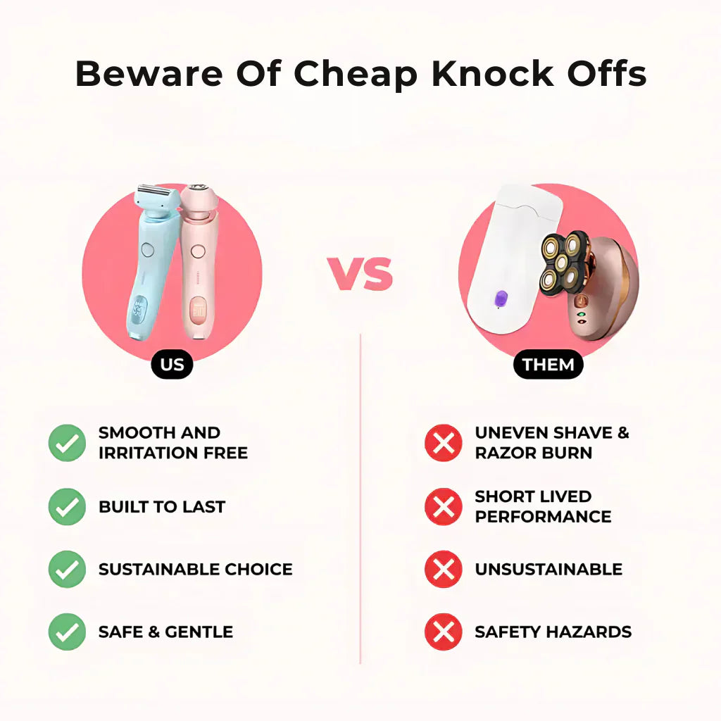 Im Gegensatz zu herkömmlichen Rasierern reduziert unser innovatives Design das Risiko von Schnittverletzungen und Rasurbrand. Drei Edelstahlklingen arbeiten harmonisch zusammen und gleiten mühelos über die Haut, entfernen unerwünschte Haare ohne Reizungen, Schnitte oder Ziepen.