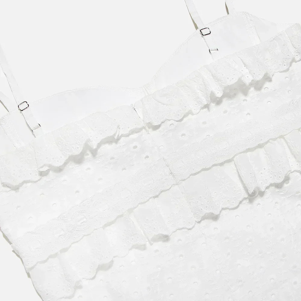 Stilvolles Besticktes Camisole Maxikleid in Weiß – Alina
