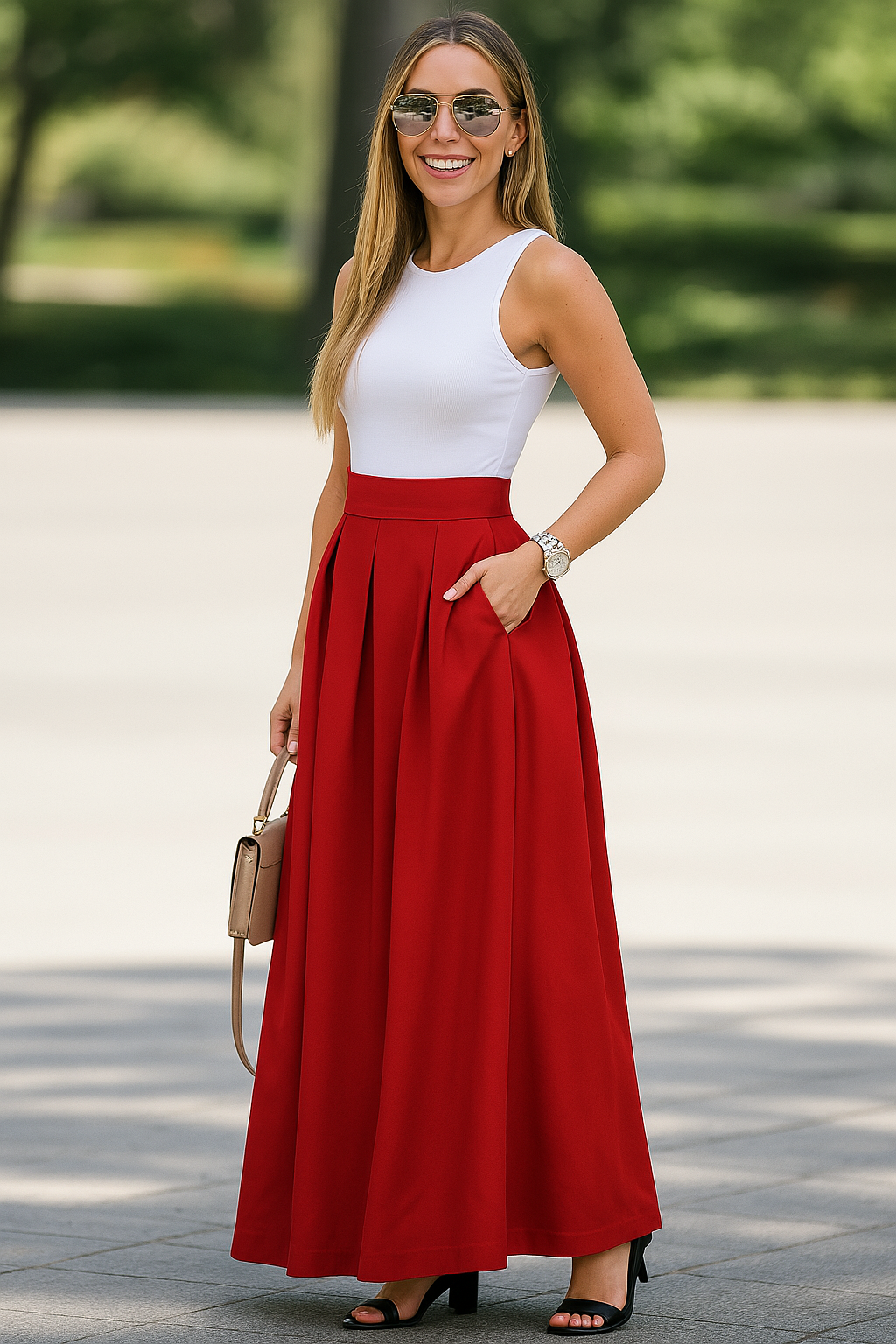 - 1x Stuttgart | Unifarbener Faltenrock mit hoher Taille